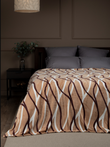 Плед микрофайбер, 150х200, набивной,"Волны", фланель, цв. бежевый, TF FN F90