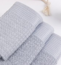 Полотенце махровое однотонное жаккардовое, пастельных тонов. Рисунок "ячейка" в структуре махры. Бордюр с добавлением вискозной нити в виде волны. Быстро впитывают влагу.Полотенца необходимы как для дома или квартиры, так и для различных организаций (отелей, хостелов, больниц).