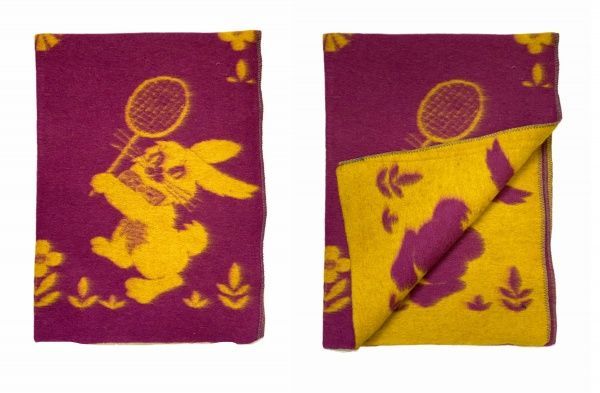 Одеяло детское шерстяное, 100х140, жаккардовое, "Зайка", цв. бордо-желт, пл. 708 г/м2, арт.С136
