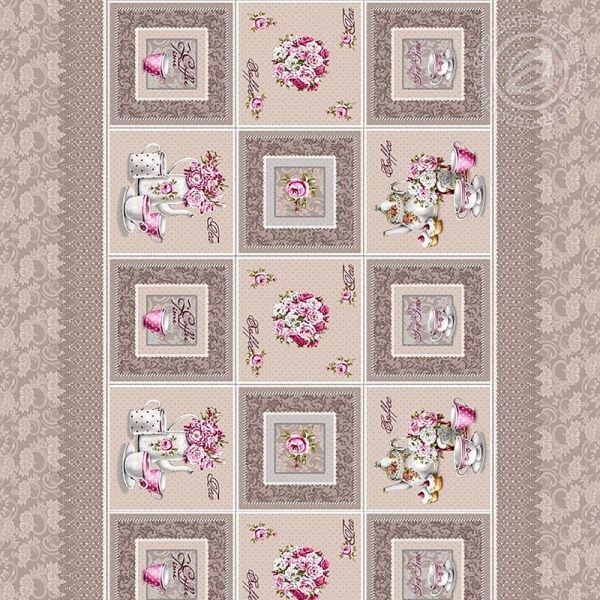 Как и стилю «барокко», одноименному рисунку свойственны контрастность, динамичность образов, пышность и броская цветистость.Он весь покрыт тонкой «сеткой» и ажурными принтами.В центре они «ложатся» на кремово-белый фон, а по бордюру – на светлый кофейный.