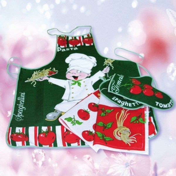 Набор кухонный "СПАГЕТТИ" (фартук, прихватка, варежка,полотенце), Авиком