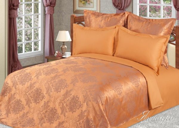 Постельное белье сатин жаккард однотонный 2,0 сп., Янтарь "ГолдТекс"